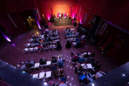 Als gemeinnützige Organisation war das Budget zwar begrenzt, aber wir haben mit unserem erfahrenen Team aus Locationscouting und Veranstaltungstechnik das meiste aus der Off-Location, dem alten Englischen Theater im Frankfurter Bahnhofsviertel, rausgeholt!
