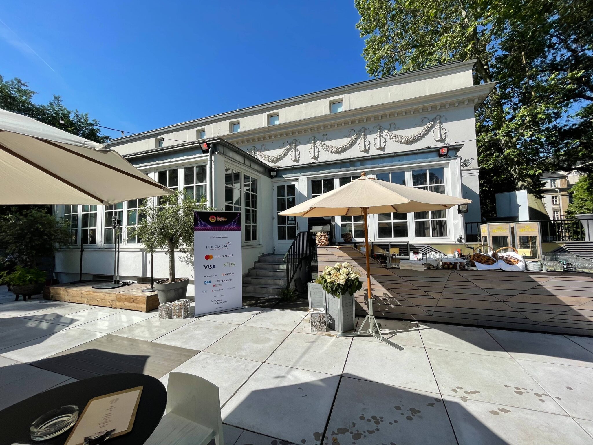 - Gesucht wurde eine cateringfreie Eventlocation, die auch über einen großen, privaten Außenbereich verfügt, um den Networking-Teil am Abend in sommerlicher Atmosphäre zu gestalten.