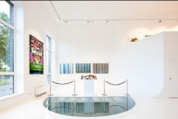Eine lichtdurchflutete Galerie in überwiegend weißer Farbe, was der Kunst die volle Aufmerksamkeit gibt. Hier kann das Event für sich sprechen, ohne große Ablenkungen in der Räumlichkeit.