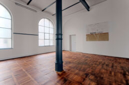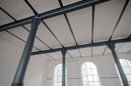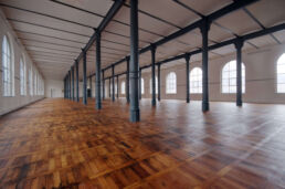 Das historische Backsteingebäude hat sich seine Substanz über die Jahre bewahrt. Der prachtvolle Saal zeichnet sich durch eine von gusseiserne Stützen getragene fünf Meter hohe Kappendecke, das Parkett aus alter Rotbuche und tiefe Rundbogenfenster, die den Raum zum Licht öffnen, aus.