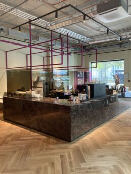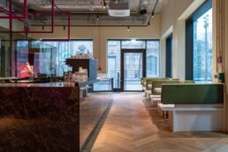 Das in purple und smaragdgrün getauchte Interiour schafft mit gedimmtem Licht und catchy Beats eine verheißungsvolle, intime Atmosphäre, die in einen high-end Escape Room eintauchen lässt. Hier sind anregende Conversations und intensive Blicke always welcome. An der opulenten Barinsel, dem Herzstück der Location, kreieren unsere Bartender delicious Drinks für jeden Mood – we know how to please your desires.